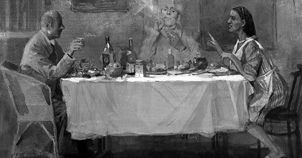 — А помнишь, мы договорились: за столом не курить, — сказала Гей.