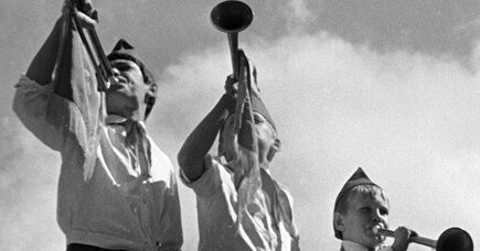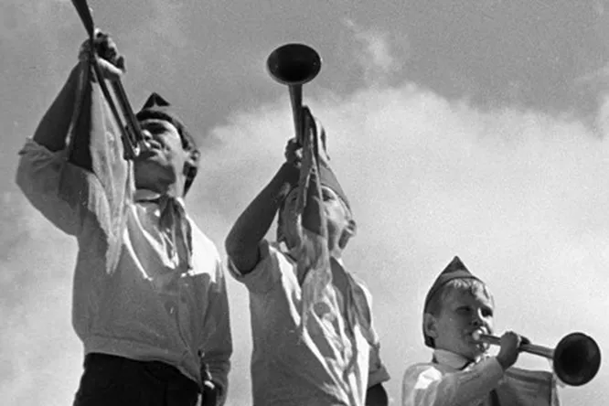 Ночь. Четырехместная палата пионерлагеря. Свет в палате выключен. Три койки пустые, на четвертой лежит Леша и при свете фонарика читает книгу. В палату вбегает радостно возбужденный Дима и кричит.