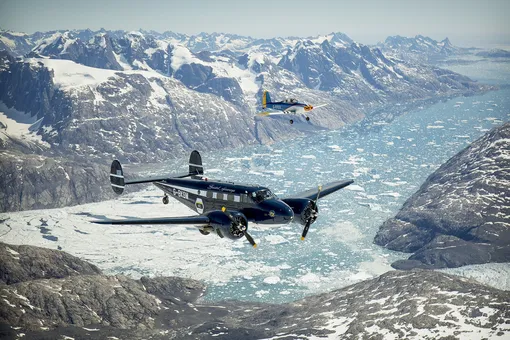 Винтажные самолеты пролетают над Гренландией во время 10-дневного полета из Шотландии в Канаду по арктическому кругу.