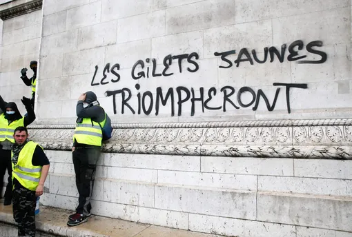 «Желтые жилеты победят», — гласит надпись на стене. Желтые жилеты стали символом французского протеста, спровоцированного повышением налогов на топливо. Митинги быстро переросли в массовые беспорядки: погибли три человека, пострадали исторические здания — Триумфальная арка (ее временно закрыли для туристов), здание Пантеона, где захоронены останки выдающихся деятелей Франции с конца XVIII века, а также дворец Отель-де-Виль, в котором расположена столичная мэрия.