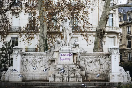 Статуя неподалеку от Триумфальной арки, на которой написано «Народный бунт».