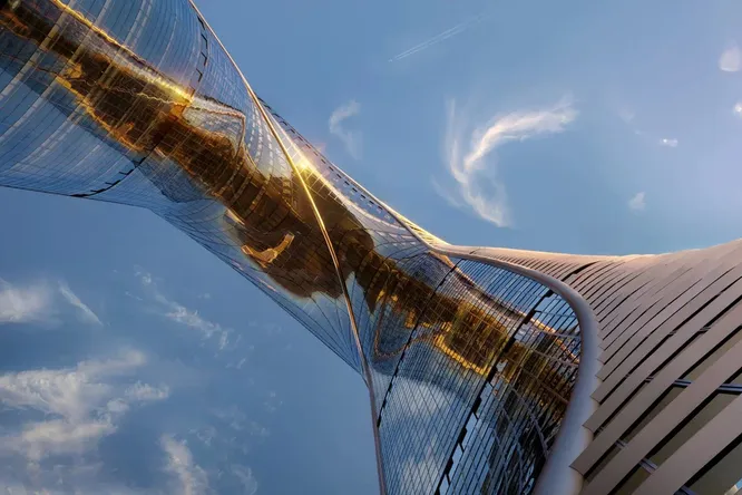 Архитектура One, по словам Кузнецова, вдохновлена лентой Мебиуса — фасад с панорамным остеклением образует плавную, бесконечную линию, а две башни, соединенные парящим мостом, будто перетекают одна в другую. Силуэт подчеркнет архитектурная подсветка: ранним утром она медленно разгорается, к вечеру достигает максимальной яркости, а ночью плавно затухает, переходя в ночной режим.