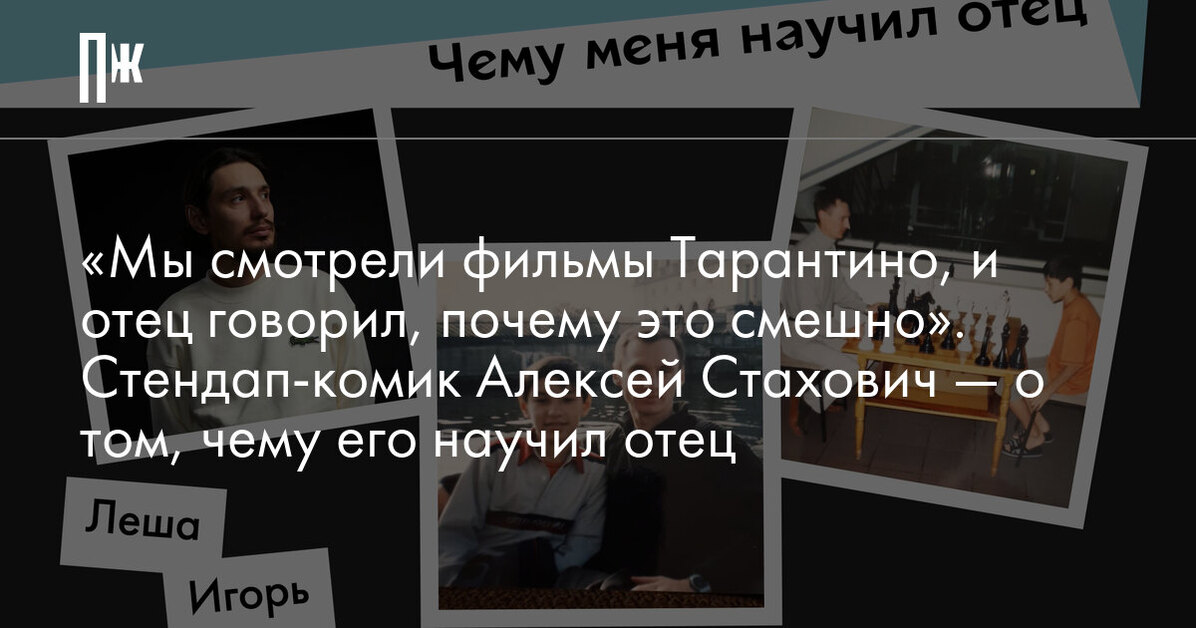 «Мы смотрели фильмы Тарантино, и отец говорил, почему это смешно». Стендап-комик Алексей Стахович — о том, чему его научил отец