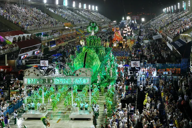 Ежегодное шествие учеников школ самбы по самбодрому Marquês de Sapucaí в Рио-де-Жанейро. Этот парад — главное событие карнавала в Бразилии, который проходит в течение пяти дней перед Великим постом. Главные состязания с участием школ Высшей лиги проходят на самбодроме — 700-метровой улице, по обеим сторонам которой расположены трибуны для более чем 80 тысяч зрителей.