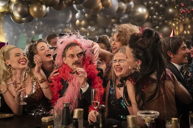 Но потом в фильм начинают заселяться гости — и каждый новый вместо того, чтобы укрепить конструкцию этого теремка, словно бы вытаскивает по карте из основания и без того шаткого карточного домика. Полански сознательно приумножает хаос, но делает это методами, за которые как-то неловко. Хорошие шутки и острые гэги быстро куда-то исчезают, и вдруг начинается треш-карнавал. Режиссер откровенно издевается над актерами (и прежде всего — актрисами), ставшими жертвами пластической хирургии. Дама с собачкой кормит свою псину исключительно черной икрой, и та, конечно же, гадит на простыни. Транспортировка фекалий становится сквозным сюжетом картины. Пенсионер занимается сексом с едва достигшей совершеннолетия женой. Порноактер отбивается от поклонников. Фанни Ардан решает соблазнить мускулистого сантехника. А пингвин робко прячет свое тело в разных уголках отеля, потому что предчувствует, что его ждет.