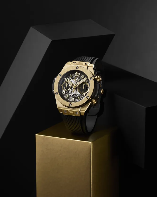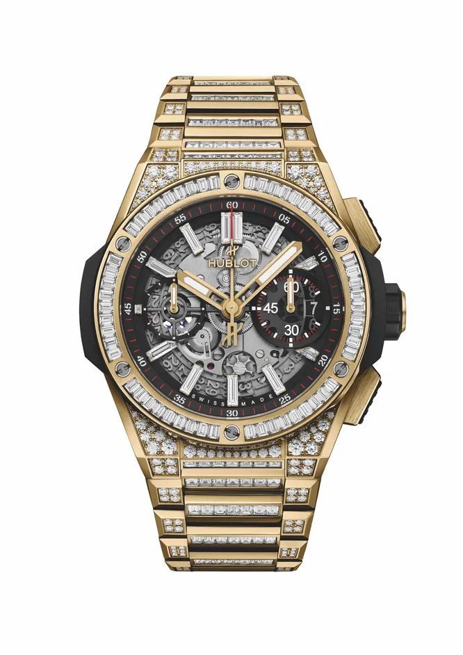 Комплект из шести новых моделей Classic Fusion, Big Bang и Spirit of Big Bang от Hublot — это не только пример часового искусства, но и напоминание бренда об одном из своих любимых материалов — желтом золоте. Три 42-миллиметровые скелетонизированные версии Big Bang Integral с автоматическим механизмом, выполненные полностью из желтого золота (корпус, безель и браслет), доступны также в двух вариантах с бриллиантами: версия Pave украшена 120 камнями, а версия Jewellery — 64 бриллиантами классической и 14 бриллиантами багетной огранки.