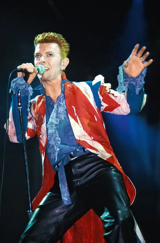 Женившись на супермодели Иман, Дэвид Боуи отошел от радикальных экспериментов с внешностью. Самый знаковый наряд музыканта в 1990-х – сюртук из британского флага работы Александра Маккуина. Боуи признался, что это была единственная дизайнерская вещь, за которую он заплатил лично, потому что обожал молодого дизайнера, который на тот момент нуждался в деньгах. На выставке David Bowie is этот сюртук экспонировался на фоне увеличенной записки от Маккуина, в которой он извинялся за то, что не сшил вещь вовремя.