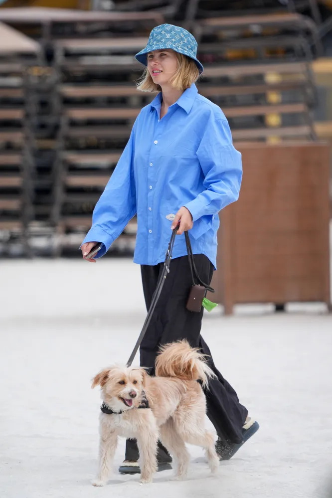 Лучшие аксессуары тут — вещи с таким же летним настроением: панамы, удобные сандалии на плоской подошве, плетеные сумки. Но это не значит, что пижамный комплект нельзя носить с чем-то более солидным: так, кожаная сумка уравновесит легкомысленность одежды, а кроссовки настроят на активный день.