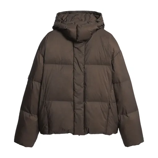 Возможно, самый обсуждаемый российский бренд последнего полугодия выпустил свою версию укороченного бокси-пуховика. Здесь акцент сделан на посадке, которой всегда славились вещи Planta Rosa, и принте, приятно выделяющемся на фоне черно-серо-коричневой цветовой гаммы нашей подборки. Яркая ткань, стилизованная под технику петчворк, сразу бросается в глаза на улице.