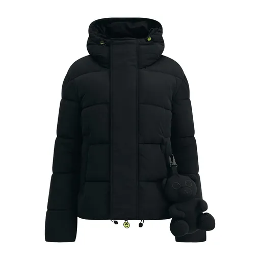 Обвесы — одна из самых больших тем в мире женской моды за последние несколько лет. Если там они обсуждаются в контексте сумок и их дополнительного преображения, то у нас есть вариант куртки с обвесом от бренда Barrow. Да, это классический укороченный пуховик, который дизайнеры решили разбавить красивой мягкой игрушкой в виде мишки на специальном карабине, которая точно станет вашей отличительной деталью (или она окажется у вашей второй половинки на сумке).