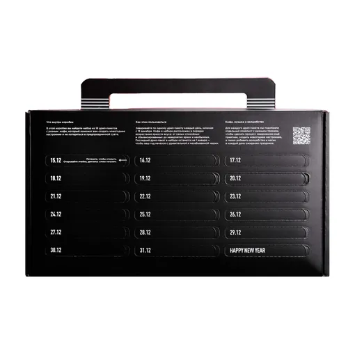 Адвент-календарями с чаем или кофе уже, кажется, удивить сложно. Но не в этом случае. В наборе 18 дрип-пакетов, на упаковке каждого из них изображен QR-код с новогодним треком. С этим боксом остаться без предпраздничного настроения сложно. Ведь каждое утро будет начинаться со вкусного кофе и подходящей музыки.