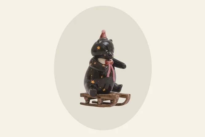 В ассортименте различные мишки с барабанами, на санках или самокатах, самолетики, оленята, котята, слонята и другие звери, щелкунчики, целая серия по «Гарри Поттеру» и еще куча всякой трогательной красоты, будто с елки из детства.