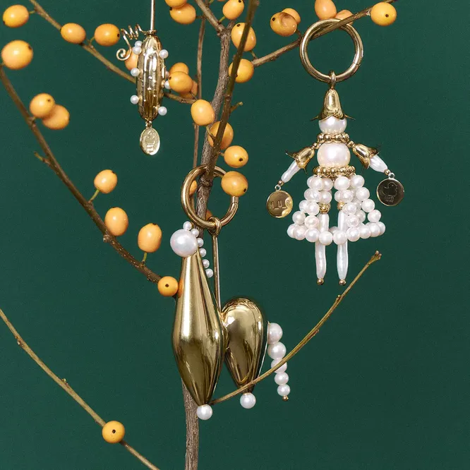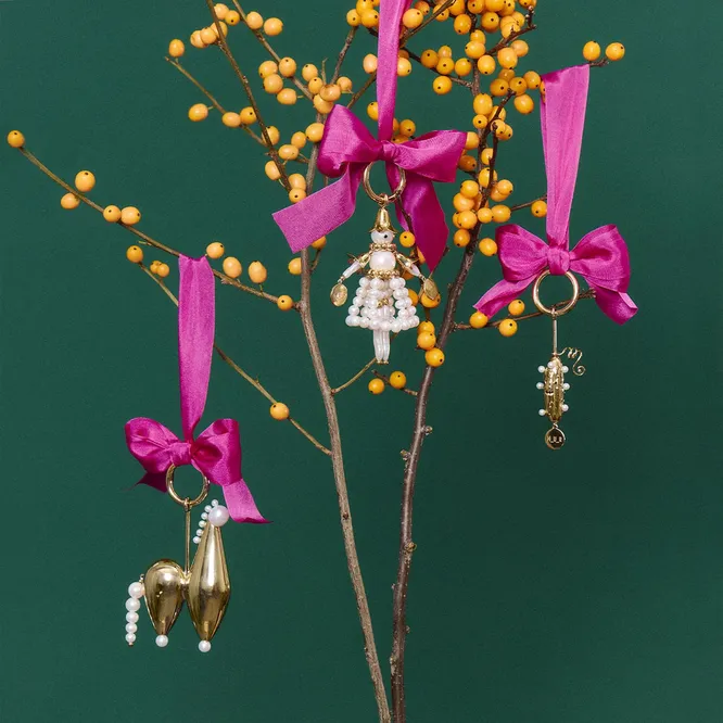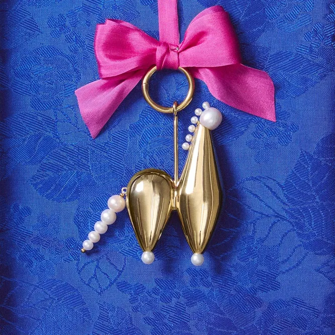 Закончим подборку коллаборацией: санкт-петербургский бренд одежды MUR совместно с ювелирной маркой M-Eleven (кстати, тоже из Петербурга) создали капсулу из трех игрушек-подвесок, каждая из которых легко может перекочевать с новогодней елки в ваш гардероб.