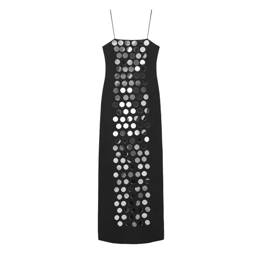 Блеск давно стал неотъемлемой частью новогодней эстетики. Пайетки, стразы, стеклярус и бисер закрепились за вечерней одеждой во многом благодаря театральным и сценическим костюмам, где они использовались для отражения света. В 1920-е годы платья-флэпперы полностью покрывались бисером, который звенел и переливался при каждом движении во время танца, а сегодня источником вдохновения могут служить образы Зендеи, Кендалл Дженнер и Кэти Перри. Одна вещь с блестящей отделкой уже задает образу праздничное настроение: топ с пайетками и черные брюки прямого кроя, юбка-карандаш со стразами и белая хлопковая рубашка, платье-комбинация с бисерной вышивкой и кожаная косуха.