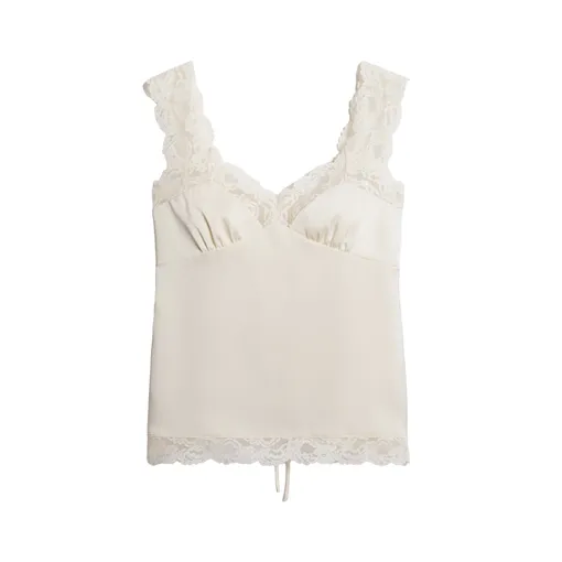 Топы с асимметрией, драпировками, открытым плечом или нестандартной линией — универсальные варианты и для клуба, и для домашней вечеринки. Шелк придает мягкость, атлас — собранность, органза добавляет объема, а кружево отсылает к эстетике бельевого стиля. Для образа в стиле 2000-х, добавьте сумку-багет, мини-юбку, серьги-кольца и, конечно, сияющий блеск для губ.