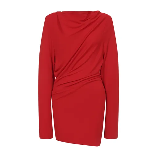 Открывает нашу подборку ярко-красное платье из вискозы, которое грех не надеть в грядущем году, потому что ровно такого же цвета будет талисман 2026-го. Симон Порт всегда умел делать одновременно и элегантные вещи, и сексуальные. Тут он не изменил себе.