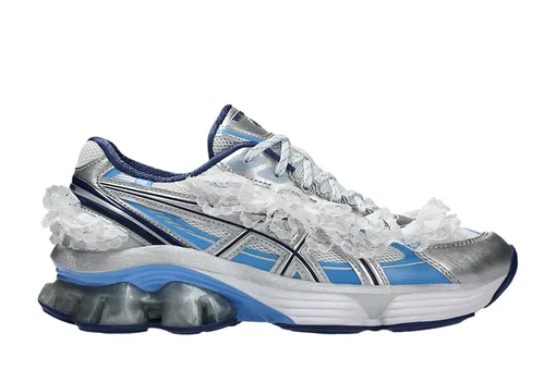 2025-й в мире кроссовок во многом прошел под знаком балета. Для трансформации любопытной модели GEL-Kinetic Fluent в балетки ASICS обратились к шанхайской марке SHUSHU/TONG, основанной выпускниками магистерской программы Лондонского колледжа моды. Активно провозглашающий женственность бренд добавил к силуэту с целым каблуком из запатентованного материала GEL объемные банты в цвет верха — они заменили панели со шнуровкой. Любопытно, что несколькими месяцами ранее бренд перерабатывал ту же модель, но в более привычном варианте — опция с рюшами смотрелась весьма мило.