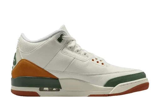 Интересный факт об основателе майамского сникерстора SoleFly Карлосе Прието: он приходится шурином самому Майклу Джордану. Ожидаемо, что у магазина выходило множество совместных релизов с Air Jordan и они пользуются популярностью в определенных кругах. Последняя итерация получилась особенной: именно с третьей номерной модели дебютировала серия партнерств двух коллективов. Палитра кожаных хайтопов одновременно отсылает к фирменным цветам команды по американскому футболу NCAA «Майами Харрикейнс» и к опыту миграции семьи Прието с Кубы в Америку. Дальнейших объяснений ко второму пункту мы не нашли, зато вспомнили оттенки айдентики ставшего историческим мексиканского напитка Jarritos — уверены, для испаноязычных сообществ США это тоже не пустой звук.