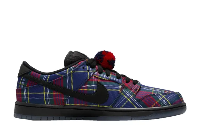 Как выглядят музыкальные журналисты, опрашивающие рэперов? При ответе обычно представляют понятные образы Эмили Оберг или Кервина Фроста, но канадец-миллионник Nardwuar похож на вашего экстравагантного дядю с высоким голосом: пестрые гавайские рубашки, длинные волосы, очки и ставшая фирменной кепка с помпоном. Ее он носит уже более 20 лет, со времен работы на телевидении. Характерный тартан и помпон «переехали» на классический низкий силуэт Dunk Pro из линейки Skateboarding, а на подошве появился «пузырь» реплики с его джинглом-напевом «Doot Doola Doot Doo Doot Doo». В общем, исполнение не вызывает вопросов — все логично и узнаваемо.