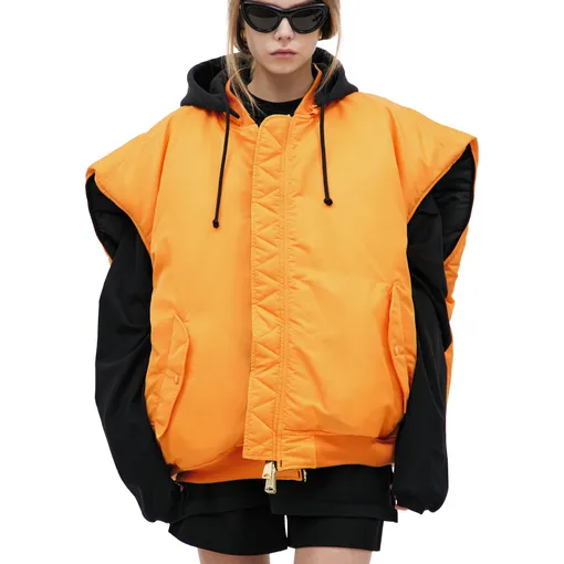 Бренд VETEMENTS уже не такой громкий, но это не отменяет того факта, что они продолжают делать очень интересные вещи, которые мы смело можем назвать экспериментальными. Например, для этой подборки мы выбрали двусторонний жилет-бомбер. Считаем, что лучше всего его носить рыжей стороной, которая сразу выделит вас в толпе.