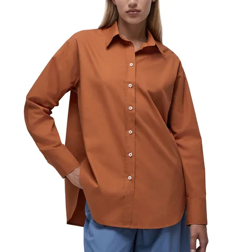 Строго говоря, она предназначена для дома. Но что мешает использовать ее на пляже? Рубашка из хлопка прикроет плечи и защитит от палящего солнца, а также станет отличным дополнением, чтобы добраться от номера к бассейну или морю. Она позволит коже дышать, не притянет лишнего тепла и будет красиво развеваться на ветру. В коллекции есть голубой и красивый рыжий цвет. Выбирайте тот, что лучше сочетается с купальником и байком.