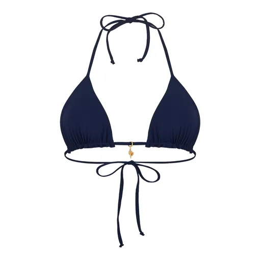 Это база и стандарт. Ни один хороший отпуск не обойдется без простого, но качественного и красивого купальника. Минималистичный дизайн и форма на завязках позволят регулировать и использовать верх так, как хочется. В коллекции представлено несколько цветов, но нам особенно нравится глубокий синий. Предметы, кстати, можно сочетать между собой. А верх купальника дополнен подвеской-ракушкой со съемным механизмом.