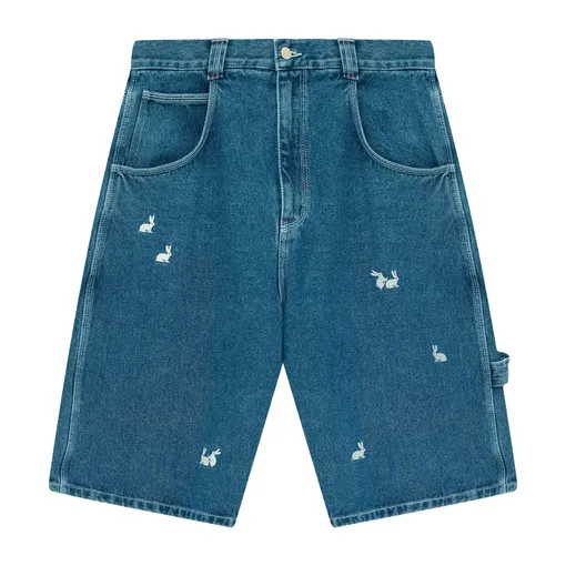 В длительном отпуске точно пригодятся хорошие шорты. Удобные, универсальные, но при этом стильные. Этот вариант дополнит любой образ — от пляжного до по меркам острова вечернего. Будет хорошо смотреться и с футболкой, и с рубашкой, и с худи, если погода вдруг подведет. Эти шорты свободного кроя представлены в забавном минималистичном дизайне, у них пять карманов и шлевки для ремня. Зайцы точно лишними не будут.