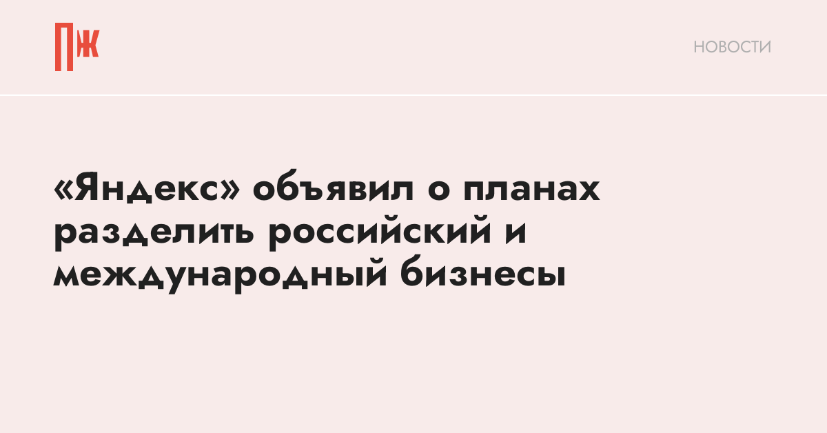 «Яндекс» объявил о планах разделить российский и международный бизнесы