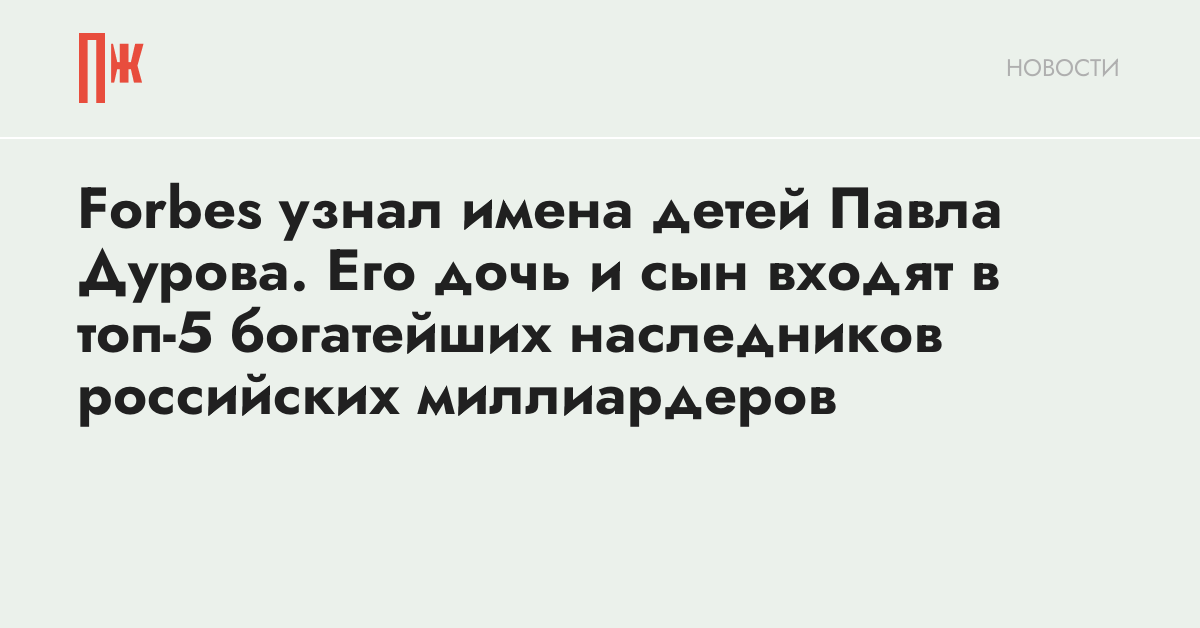 Forbes узнал имена детей Павла Дурова. Его дочь и сын входят в топ-5 богатейших наследников российских миллиардеров