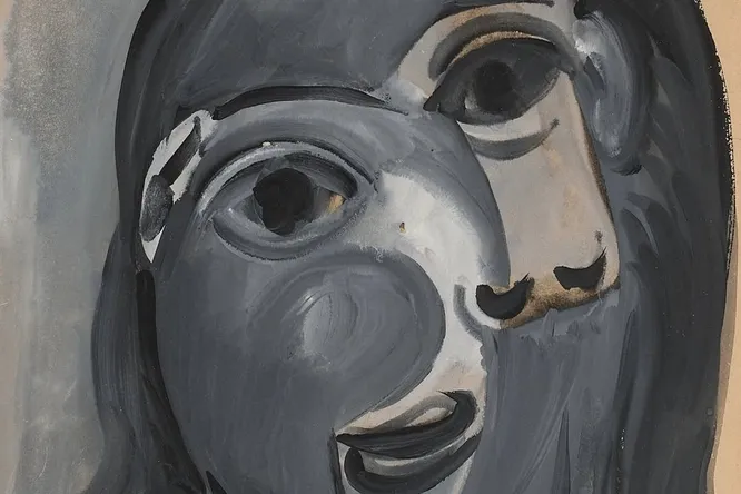 Картина «Голова женщины», на данный момент хранящаяся в галерее Opera в Лондоне, была написана в 1941 году. «Тот период был очень сложным из-за оккупации Парижа нацистами. Поэтому цвета здесь темнее, чем обычно, преобладают коричневые, серый оттенки», — говорит Оливье Пикассо, добавля, что художник хранил картину «как сувенир на память о том моменте».