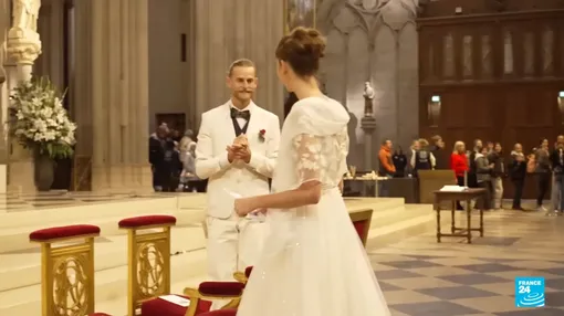 В соборе Парижской Богоматери впервые за 30 лет прошла церемония венчания. В Нотр-Дам-де-Пари состоялась свадьба одного из реставраторов собора Мартина Лоренца и его невесты Джейд, сообщает France 24 TV.