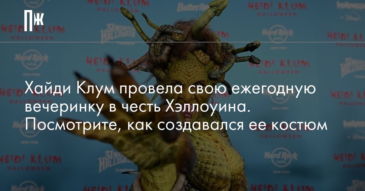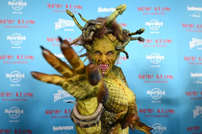 Хайди Клум провела свою 24-ю ежегодную вечеринку в честь Хэллоуина в Нью-Йорке. В этом году модель выбрала образ Медузы Горгоны, а ее муж Том Каулитц — костюм греческого воина, превратившегося под взглядом Медузы в камень.