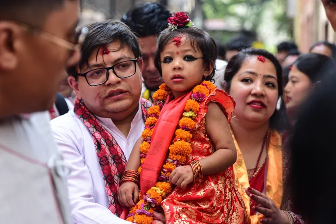 В Непале 2-летнюю девочку избрали в качестве новой живой богини. Ей поклоняются индуисты и буддисты