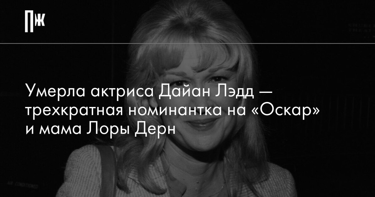 Актриса Дайан Лэдд скончалась на 90-м году жизни. Об этом сообщает The Hollywood Reporter со ссылкой на ее дочь Лору Дерн.