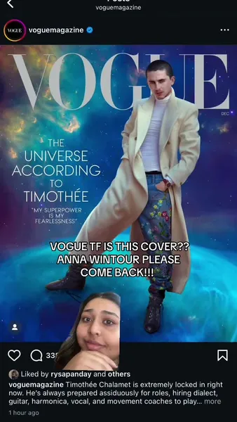 Некоторые пользователи видят в обложке с Шаламе ошибку руководителя редакционного контента американского Vogue Хлои Маль и просят Анну Винтур вернуться на позицию главного редактора Vogue.