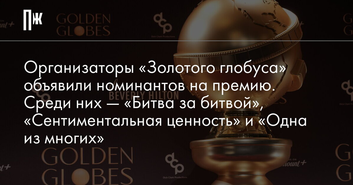 Организаторы «Золотого глобуса» объявили номинантов на премию. Среди них — «Битва за битвой», «Сентиментальная ценность» и «Одна из многих»
