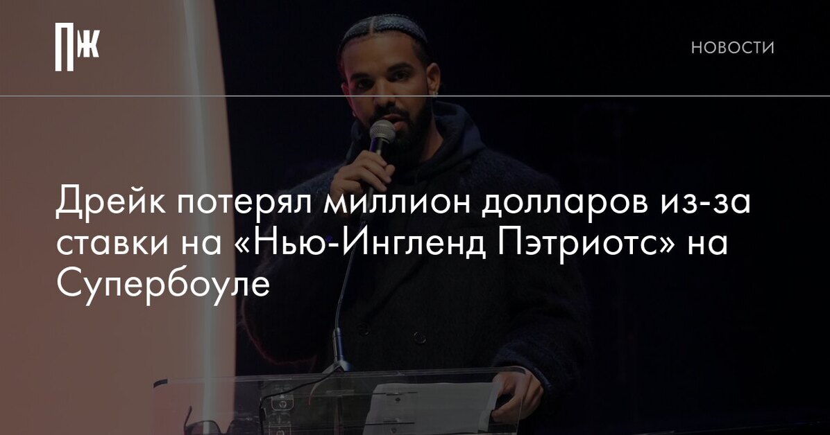 Рэпер Дрейк на днях показал в соцсетях, что поставил $1 млн на победу «Нью-Ингленд Пэтриотс» на Супербоуле. Однако 8 февраля победу над командой одержали «Сиэтл Сихокс» со счетом 29:13.