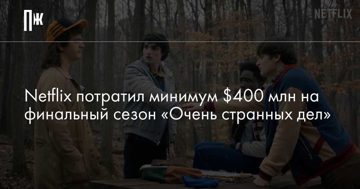 Netflix потратил от $400 млн до $480 млн на финальный сезон «Очень странных дел». Об этом сообщает Puck.