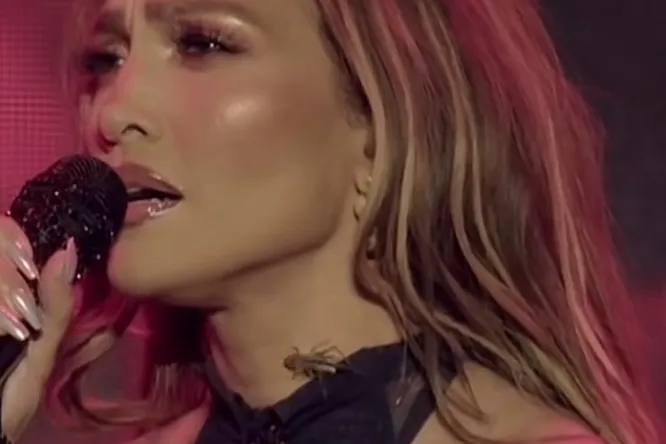 В конце одной из песен, которую Лопес исполняла под аккомпанемент гитары, на ее костюм сел кузнечик и стал ползти к шее певицы. Она невозмутимо завершила выступление и в конце песни смахнула насекомое, сделав эффектное движение рукой.