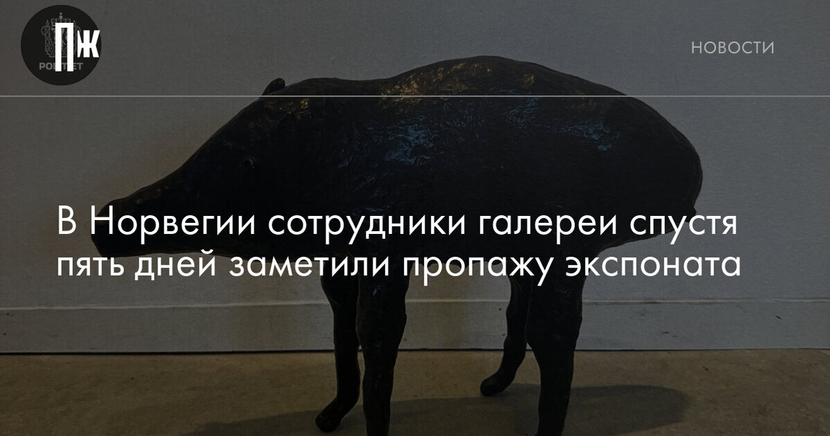 Происшествие случилось во вторник: пропала 11-килограммовая скульптура свиньи, выполненная из бронзы норвежским художником Кьеллем Эриком Килли Олсеном. Однако работники заметили это лишь в воскресенье.