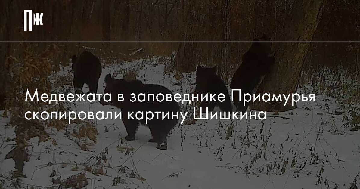 Медвежата в заповеднике Приамурья скопировали картину Шишкина