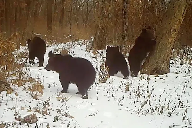 Кадры с медвежатами были сняты еще в ноябре 2025 года в центре Хинганского заповедника.