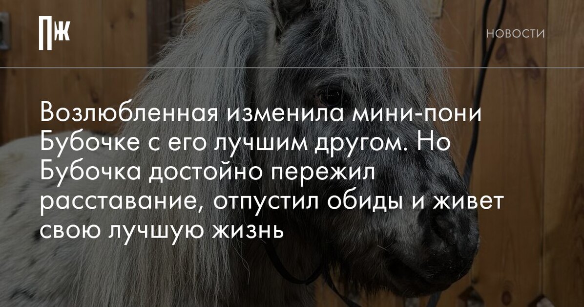В Нижегородской области живет очаровательный мини-пони по кличке Бубочка. Его хозяйка — руководительница центра реабилитации лошадей «Кантри» Ксения Антонова (@antxenya) — ведет блог о своих подопечных, где в том числе рассказала историю о любовном треугольнике Бубочки с лошадьми Шарлоттой (Шаня) и Севером.
