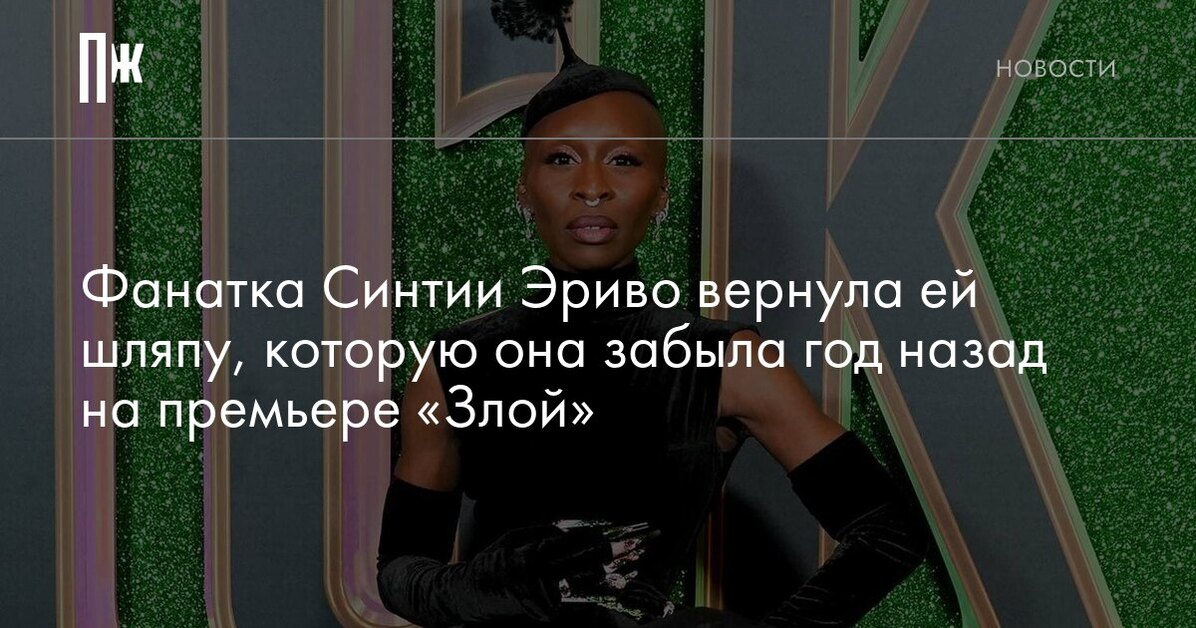 Синтия Эриво почти год спустя после того, как потеряла свою шляпу на премьере «Злой» в Лондоне, неожиданно воссоединилась с памятным аксессуаром благодаря внимательной фанатке. Об этом девушка рассказала в TikTok.
