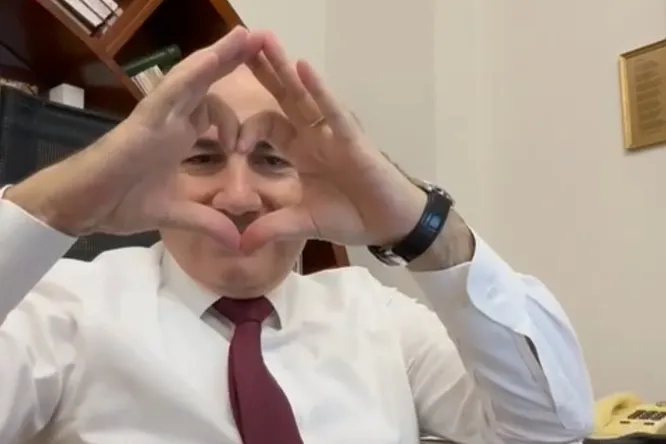 На видео политик меланхолично сидит за столом в белой рубашке и галстуке. При этом он не смотрит в камеру, не двигается и не произносит ни слова.