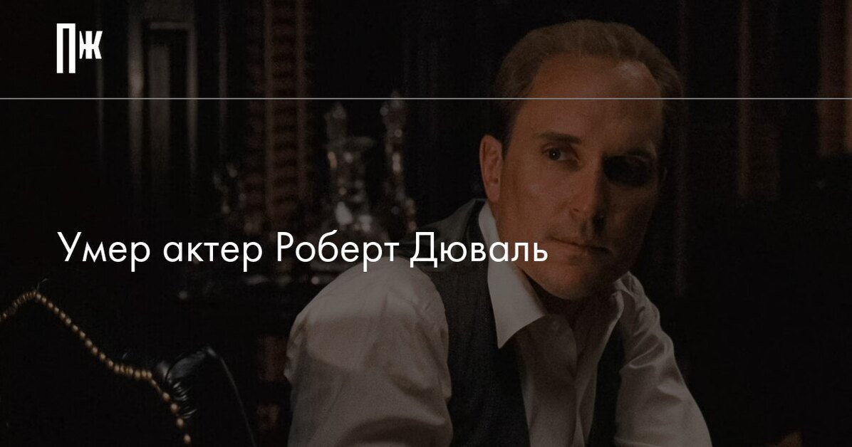 Ушел из жизни Роберт Дюваль, американский актер, известный по фильмам «Крестный отец» и «Апокалипсис сегодня». О смерти сообщила его жена Луcиана Дюваль, передает Variety. По ее словам, Дюваль скончался в воскресенье, 15 февраля, в своем доме в Вирджинии, «окруженный любовью и заботой».