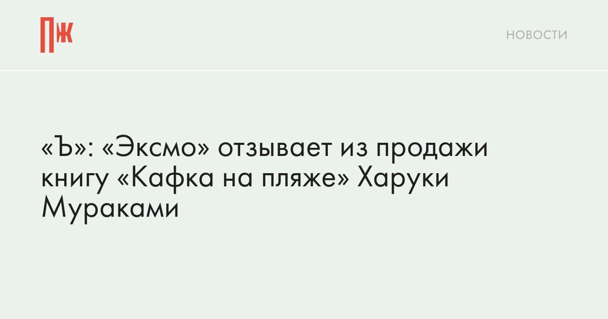 «Ъ»: «Эксмо» отзывает из продажи книгу «Кафка на пляже» Харуки Мураками