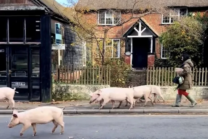 Жители небольшого городка в Англии жалуются на туристов, преследующих свиней ради селфи