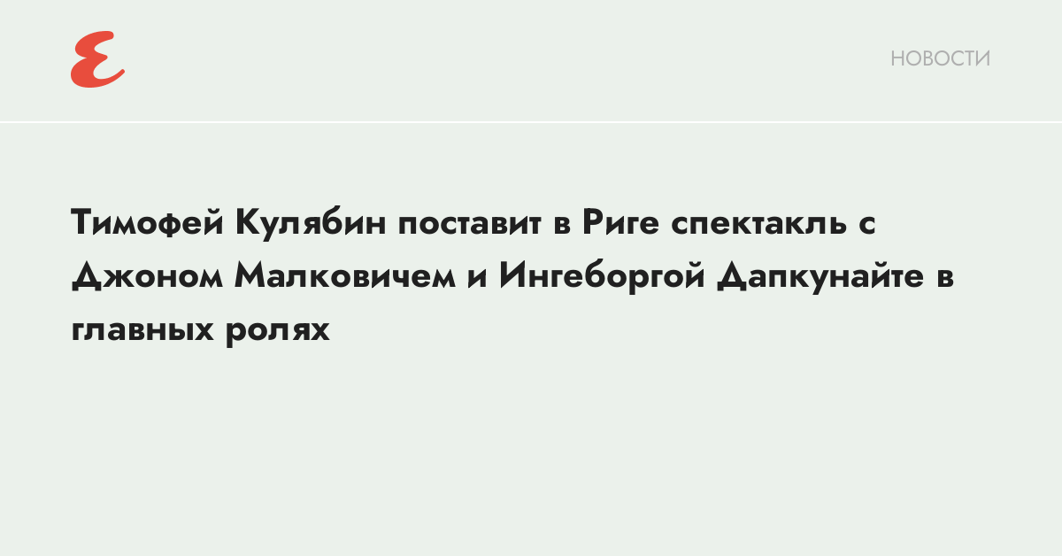 Тимофей Кулябин поставит в Риге спектакль с Джоном Малковичем и Ингеборгой Дапкунайте в главных ролях