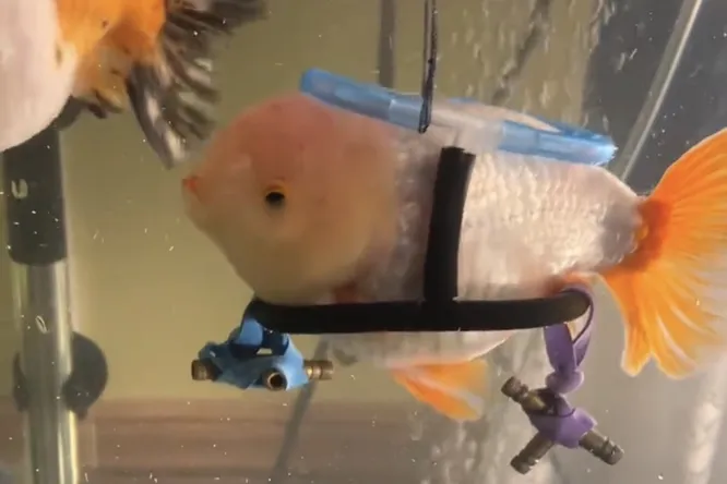 Хозяйка больной золотой рыбки создала мини-коляску, чтобы помочь ей плавать и обеспечить полноценную жизнь